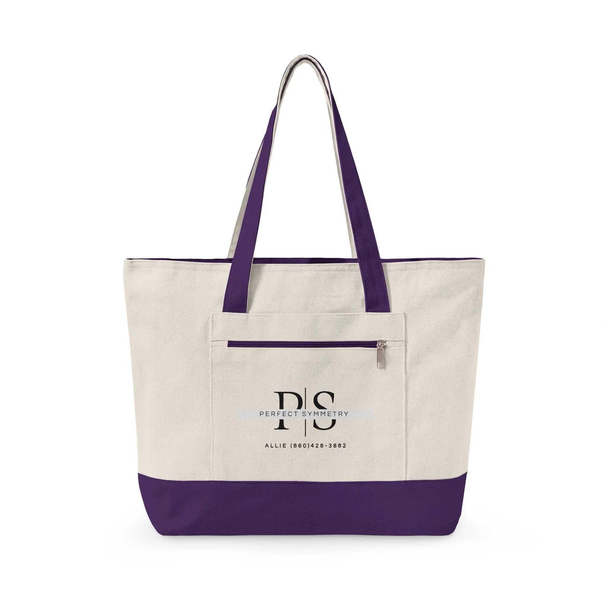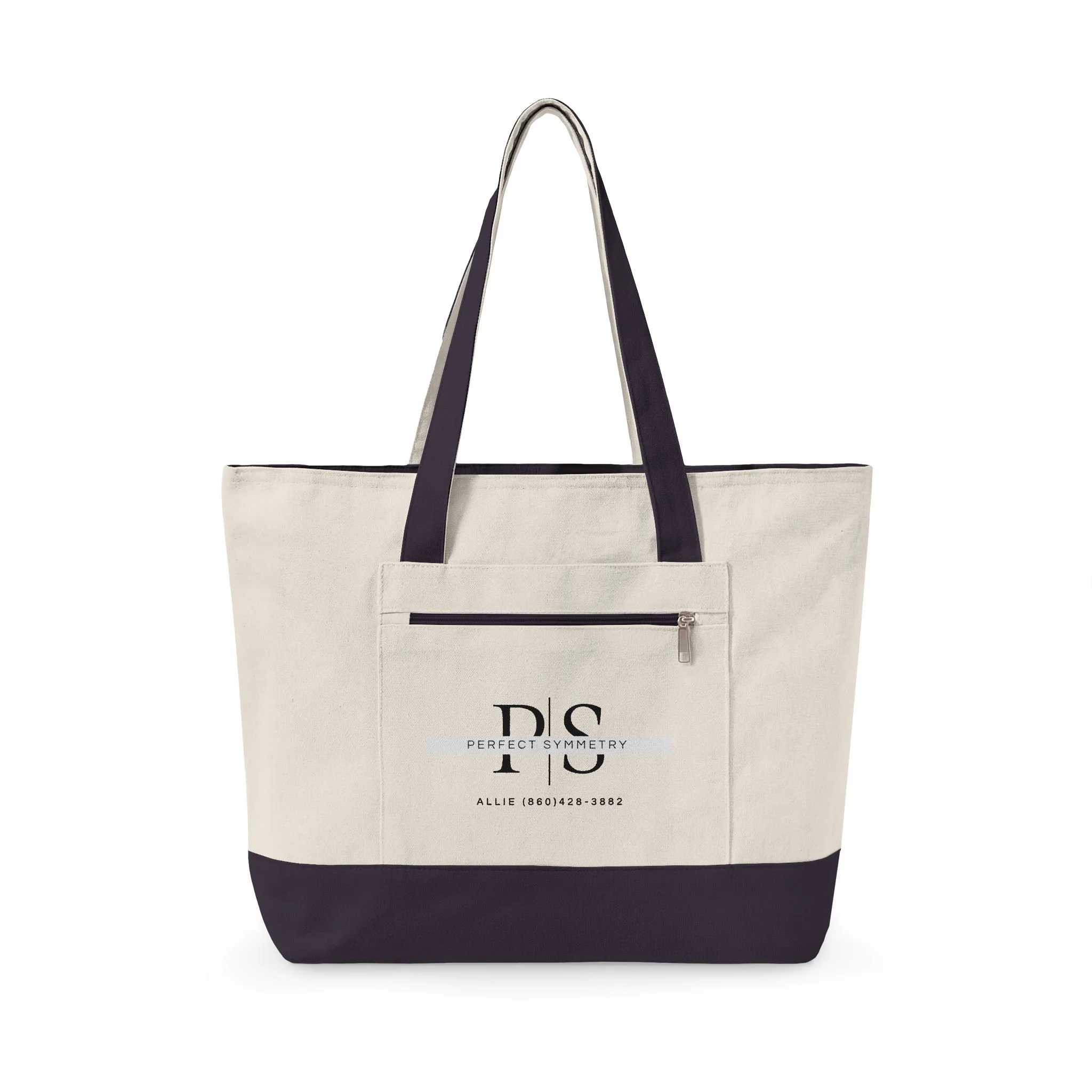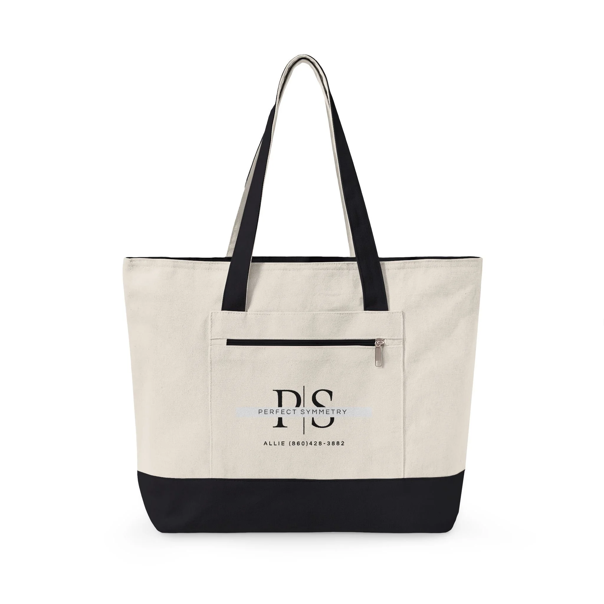 Canvas Zipper Tote Bag with Front Pocket — Minimal DLS Logo